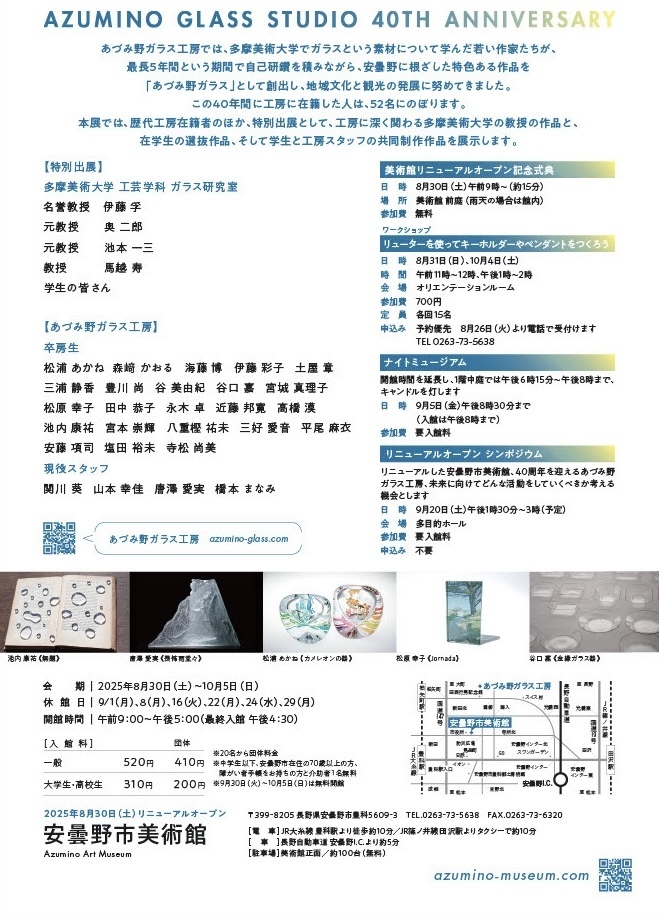 あづみ野ガラス工房40周年記念展を安曇野市美術館にて行います。