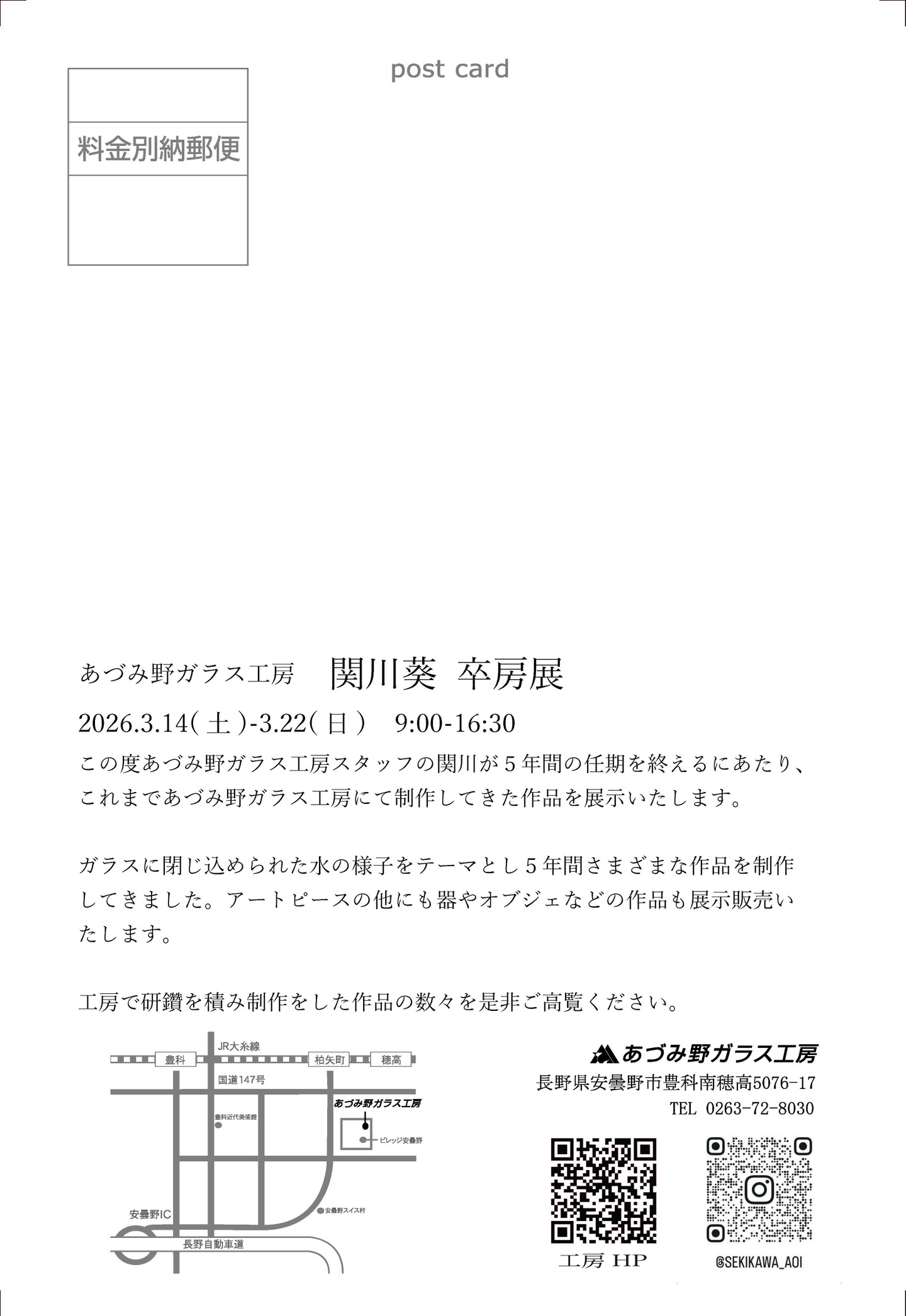 あづみ野ガラス工房 関川葵 卒房展をあづみ野ガラス工房SHOPにて開催します。