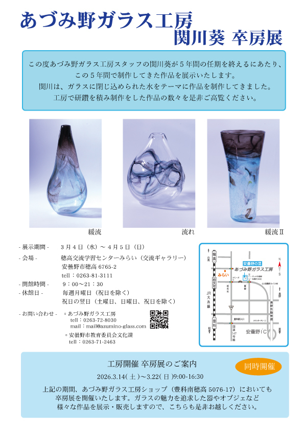 あづみ野ガラス工房 関川葵 卒房展を開催します。